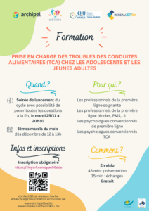 Les équipes ÉMAS TCA (Équipes Multidisciplinaires Ambulatoires de Soutien) du Brabant Wallon (@archipel.bw) et de Namur (Réseau Santé Kirikou) lancent en 2025-2026 une formation dédiée à la prise en charge des troubles des conduites alimentaires chez les adolescent·e·s et les jeunes adultes.